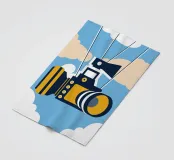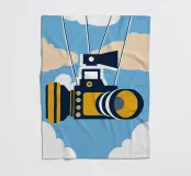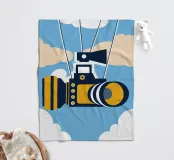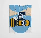 A stylized illustration of a camera suspended in the sky, perfect for photography-related designs.