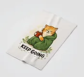 This hand-drawn illustration features a calm, determined cat reminding you to keep moving forward. With a warm color palette and gentle lines, this artwork celebrates perseverance, patience, and inner strength. A comforting piece for workspaces, studios, or any room that needs quiet motivation.