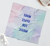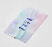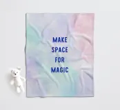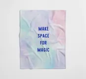 "Maak ruimte voor magie" in blauwe letters op een pastelkleurige aquarelachtergrond met een kleurverloop van lichtblauw naar roze. Een dromerig, creatief ontwerp vol lichtheid, inspiratie en zachte zelfreflectie.