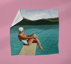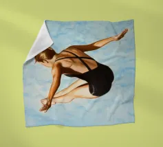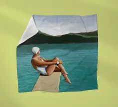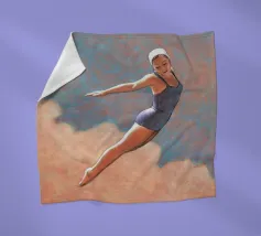 Bathed in liquid light, a lone swimmer lingers at the pool’s edge — her silhouette softened by watercolor’s gentle wash. Strength and serenity intertwine as she gazes into the blue, a quiet moment suspended between motion and memory, painted with breath and grace