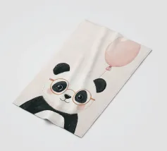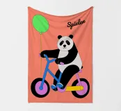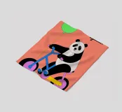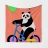 "Panda met fiets en ballon" is een kleurrijke en schattige illustratie met een panda die plezier heeft op een fiets terwijl hij een ballon draagt.