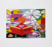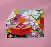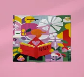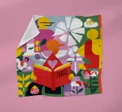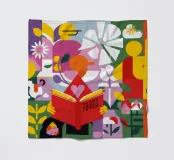 A person is engrossed in a book surrounded by vibrant flowers, with the words "turn a new leaf" creating an inspiring and beautifully illustrated piece about growth, reading, and new beginnings.