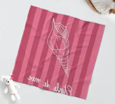 Pink shell with decorative frame on green background with the text Shell yeah! For all beach lovers!