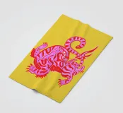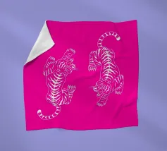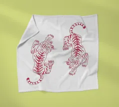 Tijgerontwerp, zeer felle kleuren die je producten meer pit geven. Heldere roodtinten verbeelden een tijger met dynamische, gebogen lijnen. De gestileerde afbeelding geeft de illustratie een bijna mythische kwaliteit en springt meteen in het oog. De contrasterende kleuren, vooral het felle rood en roze, creëren een sterke visuele aanwezigheid die energie en levendigheid uitstraalt. Dit ontwerp is ideaal voor verschillende producten zoals strandlakens, hoesjes voor mobiele telefoons of andere accessoires. De gedurfde