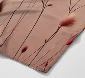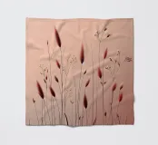 Fijne structuren, tere bloemen en fragiele grassprieten lopen als filigraanaders door het beeld en creëren een rustgevend en tegelijkertijd diep ontroerend tafereel. De dominante roze tinten geven het werk een ingetogen elegantie en nodigen de kijker uit om de schoonheid in eenvoud te ontdekken. Deze minimalistische compositie fluistert zachtjes over de vergankelijkheid van de natuur en de subtiele maar krachtige schoonheid die verborgen ligt in elk moment van het leven.
