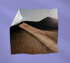 Each dune, shaped by the whispering wind, forms smooth, curving ridges that cast sharp, elegant shadows. The surface shimmers with heat, and fine grains of sand dance lightly across the crest, carried by the breeze. In this silent, arid world, the dunes stand as ever-changing sculptures — timeless, majestic, and mysterious.
