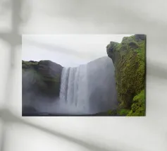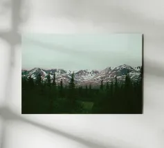 A vast, primordial landscape rests under a heavy, brooding sky. This dramatic photograph captures the untamed spirit of the Icelandic wilderness, where distant, snow-capped mountains watch over an empty plain. Passing rain showers drift across the rugged peaks, adding to the moody, atmospheric beauty of the scene. A powerful tribute to the wild, elemental forces of nature, this piece is a window into a world of epic solitude and breathtaking scale. A perfect, contemplative statement for any space.