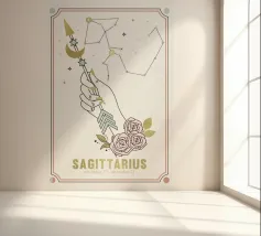 Kawaii-ontwerp van een pijl en boog die het sterrenbeeld Boogschutter voorstellen. Perfect om accessoires en decoraties een vleugje dierenriemzoetheid te geven!