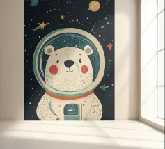 Een speelse illustratie van twee beren die bellen blazen in de ruimte die plezier en verwondering toevoegt aan elk decor of kleding. Perfect voor dromers van alle leeftijden.