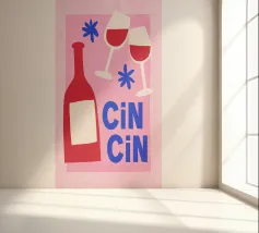 Elegant ontwerp met toast met de Italiaanse zin "Cin Cin!". - een stijlvolle viering van vriendschap, wijn en goede tijden.