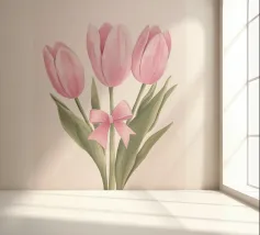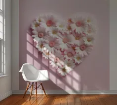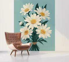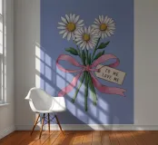 A sweet and romantic illustration of a bouquet of white daisies tied with a pink ribbon. A small tag that reads 'to my love' is attached, making this a perfect depiction of a heartfelt, romantic gesture.