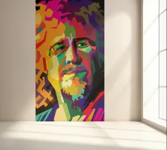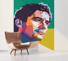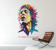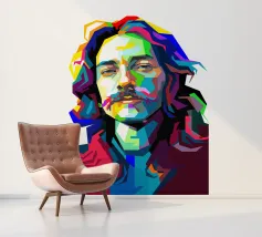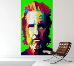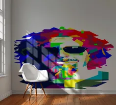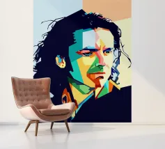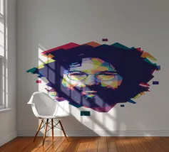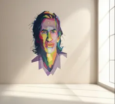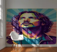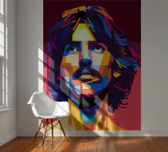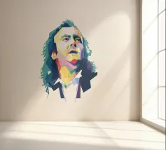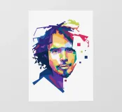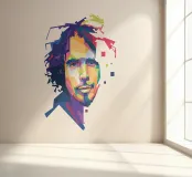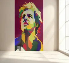 Een opvallend WPAP-portret van The Voice, de legendarische rockzanger die bekend staat om zijn krachtige stem en emotionele diepgang. Het kunstwerk is weergegeven in gedurfde geometrische vormen en levendige contrasterende kleuren. Het legt zijn intense blik en iconische aanwezigheid vast en mengt moderne pop-art energie met de rauwe geest van grunge."