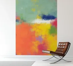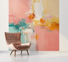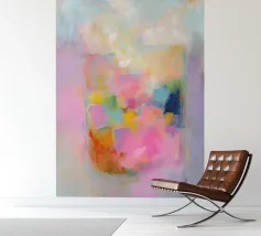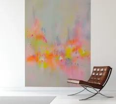 Dieses abstrakte Kunstwerk zeigt ineinanderfließende Farbflächen in Pastellrosa, Gelb, Blau und Grün und Pink. Die weichen Pinselstrukturen und die harmonische Popart Farbkomposition erzeugen eine Vibrierende, Lebendige Atmosphäre. Das Motiv wirkt modern, leicht und emotional und lädt zur freien Interpretation ein.