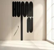 A minimalist typographic artwork exploring the journey of humanity. Bold letterforms become architecture, guiding a lone figure forward—symbolizing purpose, scale, and direction in a quiet, modern world.