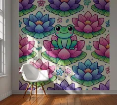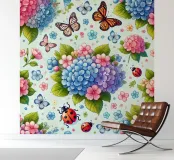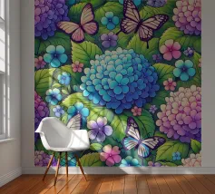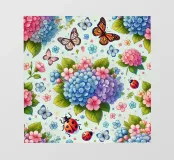 Een charmant en levendig cartoonpatroon met prachtige, zich herhalende hortensia's. Perfect om een vleugje kleurrijke elegantie toe te voegen aan elk project of ontwerp.