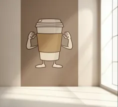 Een brein wordt afgebeeld terwijl het gevuld wordt met koffie uit een pot, met daaronder een laadbalk. De illustratie suggereert op humoristische wijze dat het brein koffie nodig heeft om goed te functioneren.