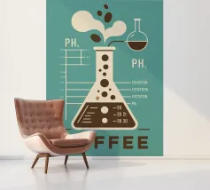 A brain is depicted being filled with coffee from a pot, accompanied by a loading bar below. The illustration humorously suggests the mind's need for coffee to function properly.