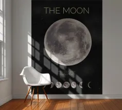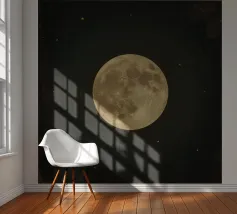 The moon hangs in the night sky, glowing with a soft, silvery light. Its surface is marked by craters and shadows, giving it a mysterious, ancient presence as it quietly watches over the Earth