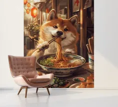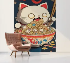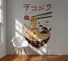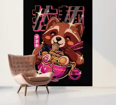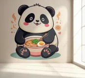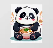 A cute and cuddly panda bear enjoying a delicious bowl of ramen. This playful design is perfect for food lovers and animal enthusiasts alike.