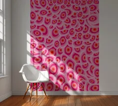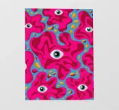 A mesmerizing and psychedelic pattern featuring repeating eyes amidst swirling, organic pink and magenta shapes. This bold and surreal artwork is both hypnotic and intensely energetic.