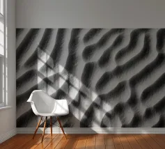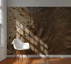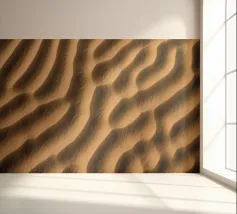 Curving lines, ridges, and swirling textures form natural designs, like nature’s artwork etched into the earth. Each grain catches the light, creating soft shadows and golden highlights that shift with the sun. The patterns are ever-changing, quietly recording the rhythm of nature’s touch.”