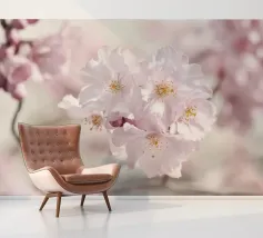 Teder lentebloesem aan een tak in een warme lichtstemming. Een zachte focus en natuurlijke kleuren benadrukken de lichtheid en frisheid van het tafereel.