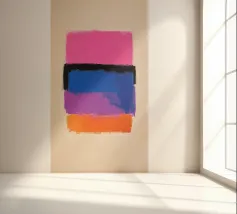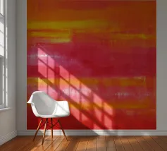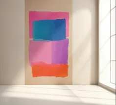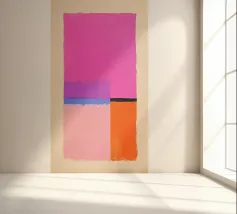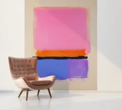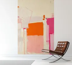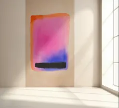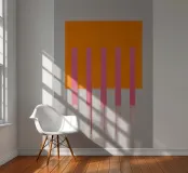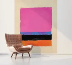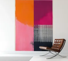 Fel oranje ontmoet roze met kleurverloop: dit abstracte werk combineert geometrische helderheid met gecontroleerde vervaging. Vijf verticale strepen lijken uit het oranje blok te druipen - als warmte, energie of emotie. Het werk lijkt gecontroleerd en impulsief tegelijk - ideaal voor moderne kamers met kracht, dynamiek en kleurrijkheid.