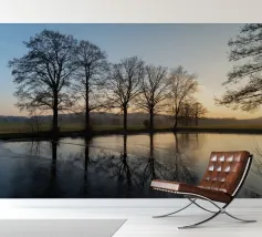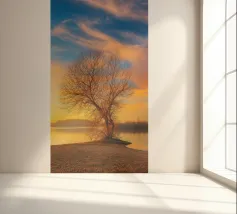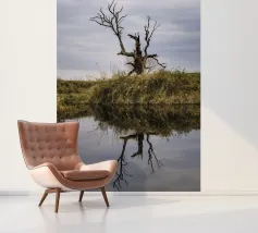 Het water beneden weerspiegelt de boom perfect en vangt elk blad en elke kromming in een zachte, glinsterende weerspiegeling. Het oppervlak is kalm, als glas, en vervaagt de grens tussen de werkelijkheid en zijn gespiegelde tweelingbroer. Terwijl het licht zachtjes over het tafereel beweegt, lijkt de weerspiegeling mee te bewegen - een stille dans van natuur en water, schoonheid en balans.