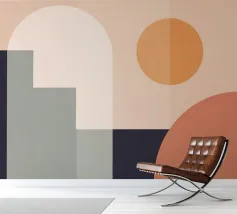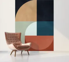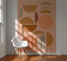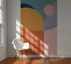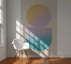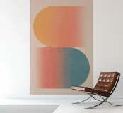 Dit moderne kunstwerk combineert heldere vormen met zachte kleurovergangen in abrikoos, rosé en petrolblauw. De minimalistische compositie met twee halfronde vlakken creëert rust, evenwicht en stijlvolle esthetiek. Perfect voor moderne interieurs, Scandinavische interieurs en iedereen die houdt van rustige muurkunst met een kleuraccent.