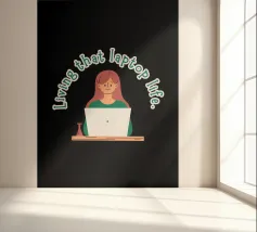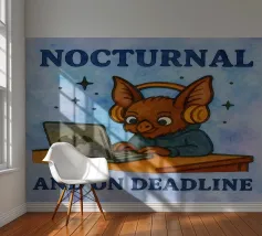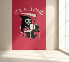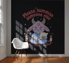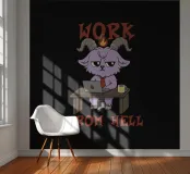 A purple demon goat in a tie sits at a desk with a laptop and coffee, under the phrase “Work From Hell.” The artwork makes a clever pun on daily work feeling like hell, with the demon literally working from hell. Ideal for fans of dark humor, sarcastic office jokes, and anyone who wants to laugh at work struggles.