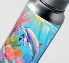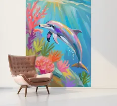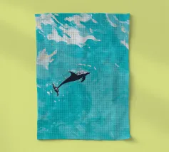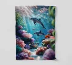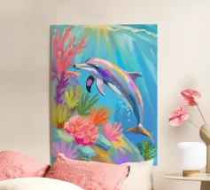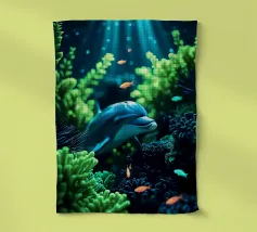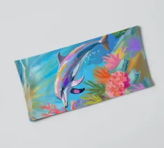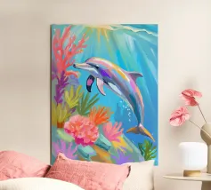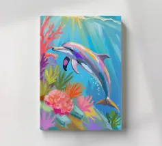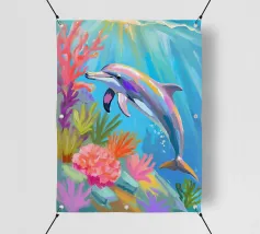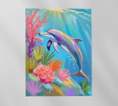 Een sierlijke dolfijn glijdt door het kristalheldere water, gevangen in een moment van vrijheid en speelsheid. Deze illustratie ademt rust én beweging — een eerbetoon aan de onderwaterwereld waar dromen en herinneringen samenkomen. Deze digitale schildering is gemaakt in een unieke, losse stijl die doet denken aan olieverf op doek, met zichtbare penseelstreken en een vleugje fantasie. ~ bedacht door Trinkets NL Design Studio, gevisualiseerd met AI ~