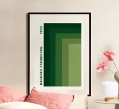 Een opvallende abstracte compositie die de geometrische strengheid van Bauhaus en de moderne trend naar rijke, organische paletten viert. Het ontwerp is geïnspireerd op de principes van het constructivisme en heeft een dynamische opstelling van zwarte, witte en in kleur geblokte geometrische vormen - vierkanten, rechthoeken, een driehoek en een cirkel - waardoor een zorgvuldig uitgebalanceerde asymmetrie ontstaat. De gebruikte kleuren zijn helemaal on-trend voor 2025: rijk mokkabruin, rustgevend olijfgroen en warm oker/mosterdgeel. De duidelijke typografie "BAUHAUS AUSSTELLUNG JUL-SEP 1919" plaatst dit abstracte werk in de historische context van Weimar. Dit is een pr