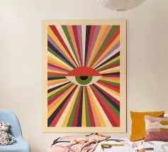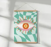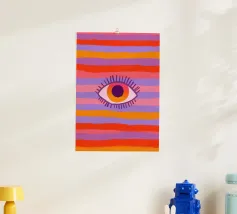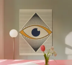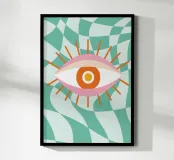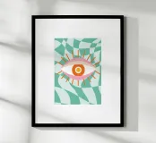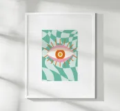 Houd een oogje in het zeil met deze Abstract Eye Graphic Design digitale kunstprint. Dit levendige hedendaagse kunstwerk heeft een opvallend gestileerd oog met een roze en oranje palet en uitstralende lijnen, tegen een dynamische verwrongen geruite achtergrond in groenblauw en wit. Het oog wordt vaak geïnterpreteerd als een symbool van bescherming of intuïtie (zoals het Boze Oog) en is weergegeven in een gedurfde, trendy en esthetische stijl. Deze hoogwaardige digitale reproductie heeft een resolutie van 7000 x 5000 pixels bij 300 dpi, wat zorgt voor een uitstekende helderheid, scherpe lijnen en schitterende kleuren. Een ideale print voor liefhebbers van gra