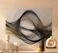 Een gedurfd abstract patroon met een vleugje dynamische energie dat beweging en vloeibaarheid symboliseert. Heldere kleuren die thema's als water, leven en beweging oproepen. Een innovatieve fusie van traditie en moderniteit voor eigentijdse, minimalistische interieurs. Een unieke visuele taal die culturele grenzen overstijgt.