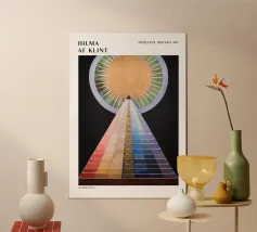 Deze prachtige kunstdruk toont Altarpiece No. 1 uit de serie Group X - Altarpieces van Hilma af Klint, gemaakt in 1907. Als visionaire abstracte kunstenares die haar tijd ver vooruit was, mengt het werk van af Klint spirituele symboliek, geometrische vormen en levendige kleurenpaletten. Dit werk maakt deel uit van haar baanbrekende serie die dateert van vóór de westerse abstracte kunststromingen, waardoor het een belangrijke toevoeging is aan elke kunstcollectie. Deze hoogwaardige print is perfect voor moderne interieurs, galeriemuren of spirituele ruimtes en bevat de ingewikkelde details en etherische schoonheid van het originele werk van af Klint.