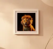 Jong leeuwenwelpje met levendige vacht en expressieve ogen vastgelegd hahnemühle