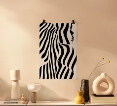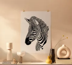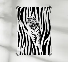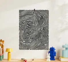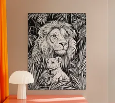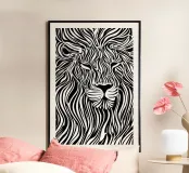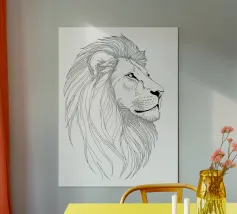 Dit betoverende leeuwenportret combineert de woeste majesteit van de koning der dieren met de visuele verfijning van Op Art. De vloeiende zebra-achtige strepen transformeren de manen in een caleidoscopisch veld van energie - een eerbetoon aan Bridget Riley en Victor Vasarely dat het dier verheft tot een grafisch kunstwerk. De ritmische lijnen creëren visuele beweging en geven het statische motief een bijna hypnotiserende vitaliteit. Een krachtig statement voor moderne kamers dat archaïsche symboliek combineert met hedendaagse designtaal.