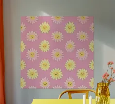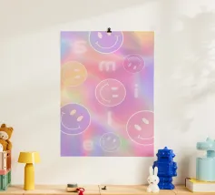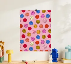 Smiling face kleurrijk patroon is een eenvoudig maar opvallend helder patroon in de kleuren roze, oranje, geel en rood. Het bevat veel lachende gezichten die je in een goed humeur brengen. Vrolijk en optimistisch patroon geïnspireerd door retro 70's stijl door showmemars
