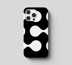 Een opvallend abstract patroon van witte in elkaar grijpende geometrische vormen bedekt een effen zwarte achtergrond en creëert zo een visueel intrigerend effect.