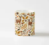 Geniet van de serene schoonheid van dit geschilderde herfstpatroon met herten, kleurrijke bladeren en bessen,