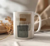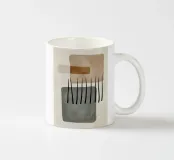 Abstracte digitale kunst met lijnen, organische en geometrische vormen met textuur en zwarte penseelstreken in zachte aardetinten van bruin en grijs. Moderne kunst voor een basic, Scandinavisch, bohemien en boho interieur. Geniet van minimalistische digitale kunst met zachte vormen en lijnen.