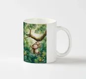 Een vrolijk jungletafereel met twee schattige aapjes die op een schommel zitten die aan een boomtak hangt. Perfect voor kinderkamers of interieurs met een junglethema, brengt speelse energie en weelderig groen naar elke muur.