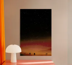 Descent of two skydivers over an alien red desert planet acryl