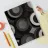 Een levendige reeks overlappende cirkels in verschillende tinten grijs, zwart en wit creëert een boeiend visueel patroon. Het ontwerp heeft contrasterende tinten die diepte toevoegen.