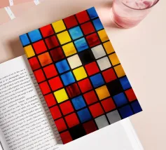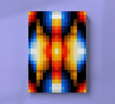 Dit kunstwerk, dat doet denken aan de kleurenstudies van Johannes Itten en de vierkanten van Paul Klee, is een eerbetoon aan de pure expressieve kracht van kleur. De compositie van ontelbare vierkanten creëert een fascinerende gloed vanuit het midden die vervaagt naar donkere, rijke tinten aan de randen. Het is een meesterlijk samenspel van contrasten en harmonieuze overgangen dat op indrukwekkende wijze de principes van de Bauhaus-kleurentheorie demonstreert. Een energiek statement dat elke ruimte vult met warme intensiteit en aanzet tot nadenken over visuele perceptie.