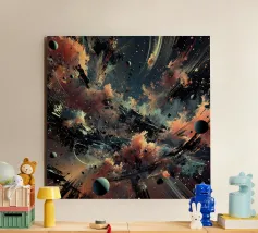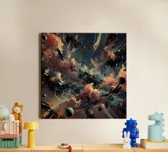 Dompel jezelf onder in de fascinerende wereld van dit indrukwekkende schilderij, dat de dynamische energie van actionpainting combineert met de emotionaliteit van modern expressionisme. Met zijn felle kleuren en expressieve, licht surrealistische stijl spreekt het tot de verbeelding en betovert het de kijker. Dit gedetailleerde kunstwerk is perfect voor de woonkamer, eetkamer, hal of operatiekamer en creëert een sfeer van creativiteit en inspiratie.