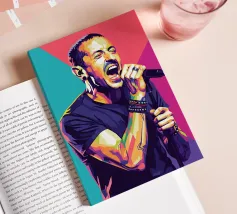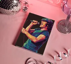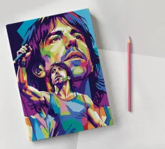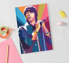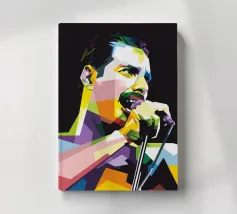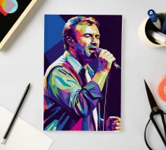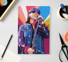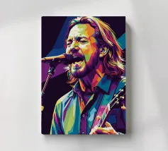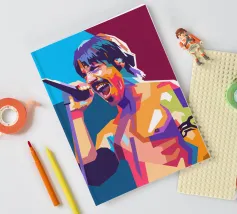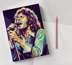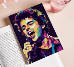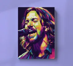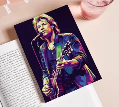 Bruce Springsteen in WPAP-stijl is een levendig, geometrisch portret van The Boss, met gedurfde, hoekige vormen en opvallende kleurcontrasten. Deze moderne pop-arttechniek legt zijn intense energie en legendarische aanwezigheid vast en weerspiegelt zijn diepgewortelde invloed op de rockmuziek. De WPAP-stijl versterkt zijn iconische imago en benadrukt zijn gepassioneerde optredens en verhalen door dynamische, contrastrijke kleuren.