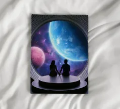 Beleef een adembenemende reis voorbij de aarde met deze surrealistische kosmische kunstprint met twee figuren die rustig zitten te staren naar Saturnus die in de nachtelijke hemel zweeft. De mix van dromerige verbeelding en realistische hemelse details creëert een vredige maar ontzagwekkende sfeer. Dit kunstwerk is perfect voor liefhebbers van de ruimte, dromers en moderne interieurs en voegt diepte, nieuwsgierigheid en inspiratie toe aan elke woonkamer, kantoor of creatieve ruimte. Een prachtige herinnering aan verwondering, schaal en het oneindige universum.