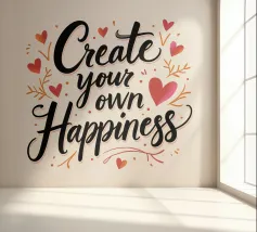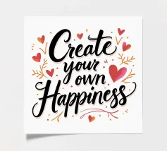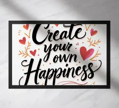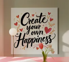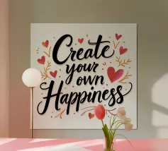 Dit inspirerende kunstwerk moedigt je aan om je eigen geluk in handen te nemen. De gedurfde typografie en levendige kleuren creëren een krachtige boodschap die je dag zal opvrolijken.