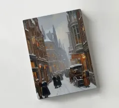 De Kerstman staat in het besneeuwde winterdorp, verdiept in een lange verlanglijst. Achter hem staat een slee vol kleurrijke cadeautjes, klaar voor de grote kerstnacht. Het schilderachtige tafereel straalt verwachting, magie en warmte uit - een liefdevol symbool voor de feestdagen en de geest van het geven.